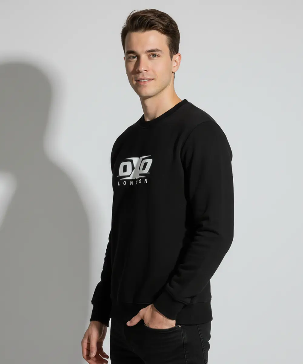 Men’s Premium Crew Neck Sweatshirts Printed Black Casual Wear