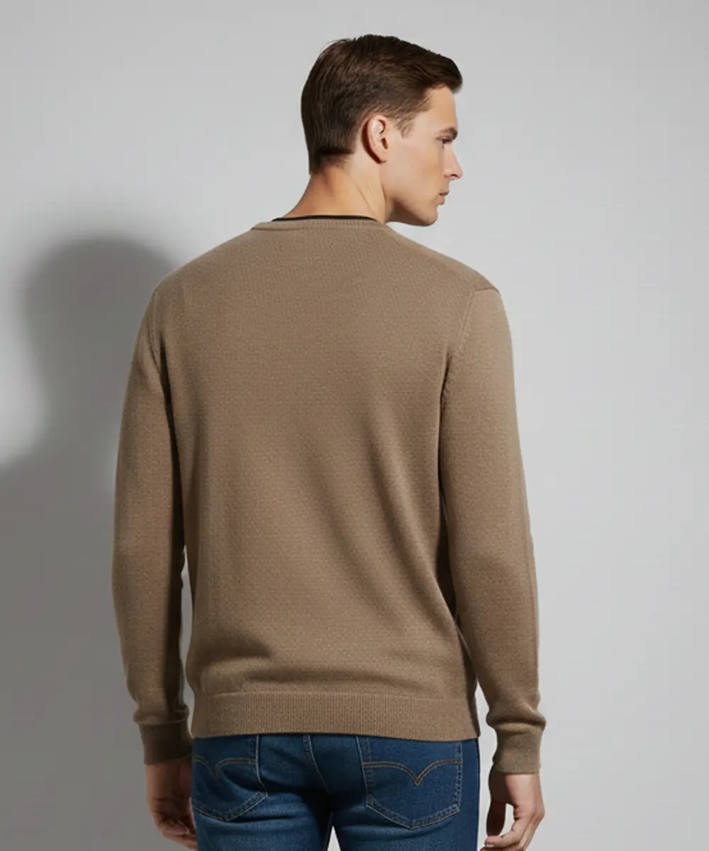This men’s V-neck knit sweater delivers a refined, casual look with timeless appeal. Designed with a subtle all-over pattern, it balances style and comfort effortlessly. The tailored fit makes it ideal for both everyday wear and smart-casual occasions. Easy to layer or wear on its own, it’s a versatile wardrobe essential.