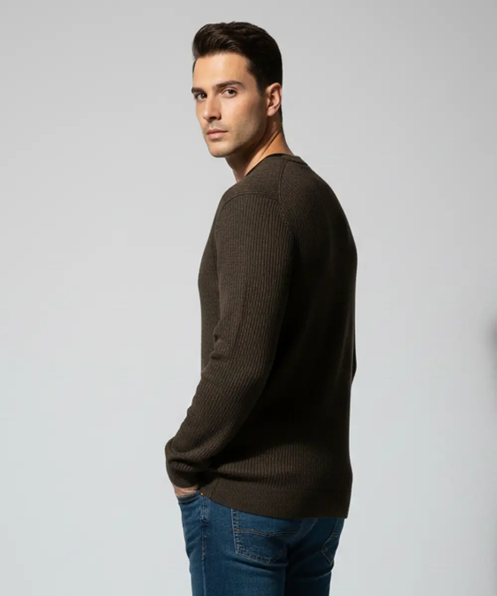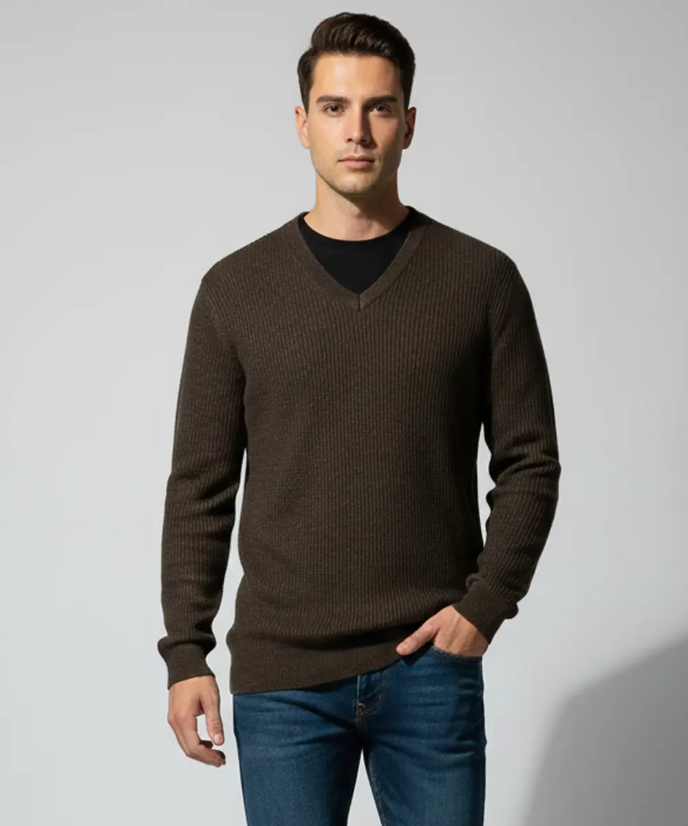 Be the first to review “Men’s Dual-Side Reversible Brown and Black V-Neck Patterned Knit Sweater”