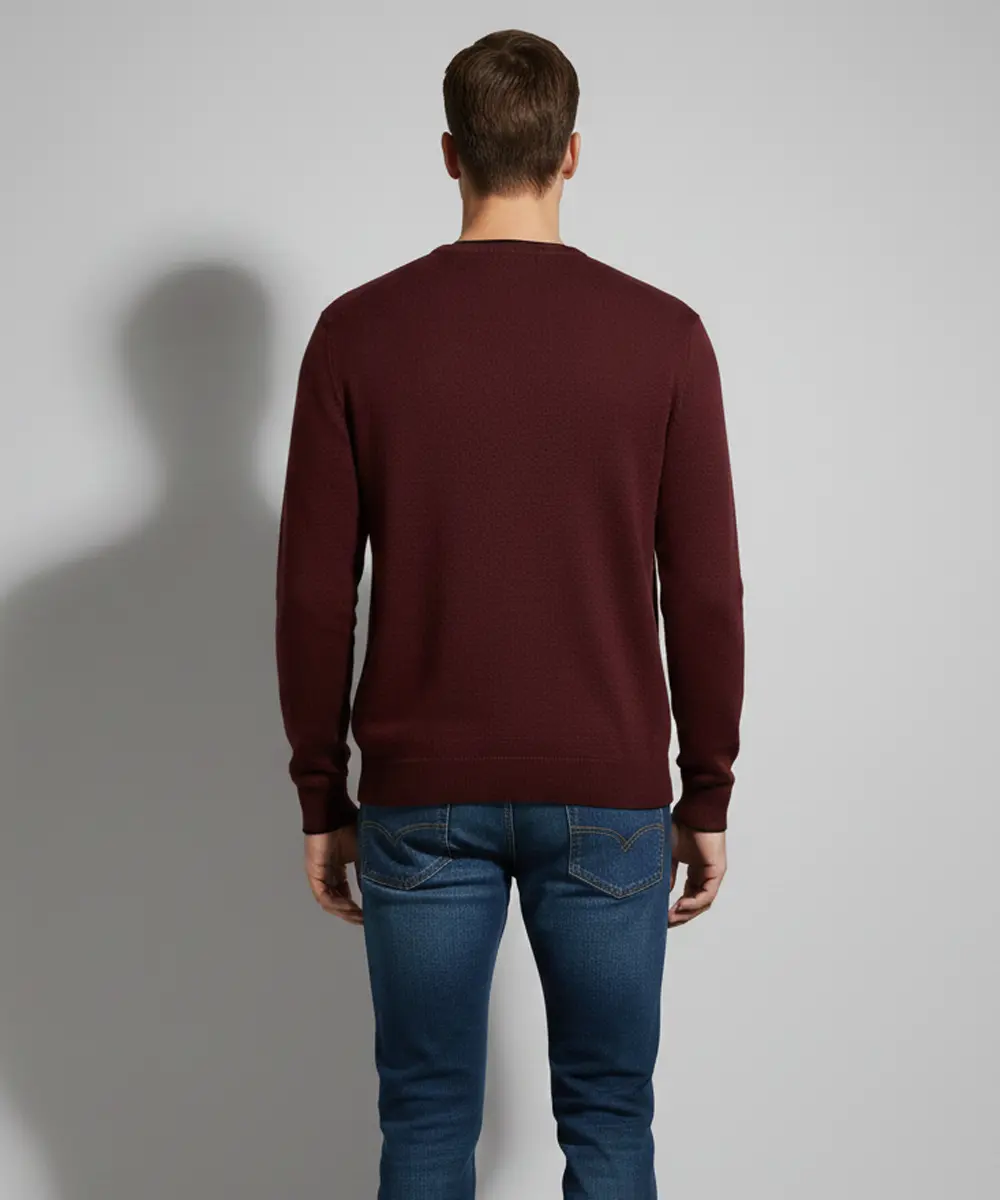 Men’s Dual-Side Reversible Burgandy and Black V-Neck Patterned Knit Sweater