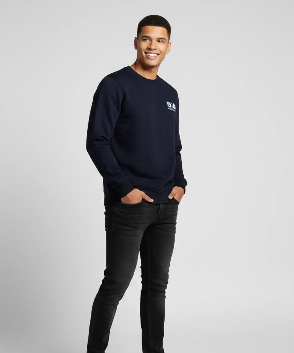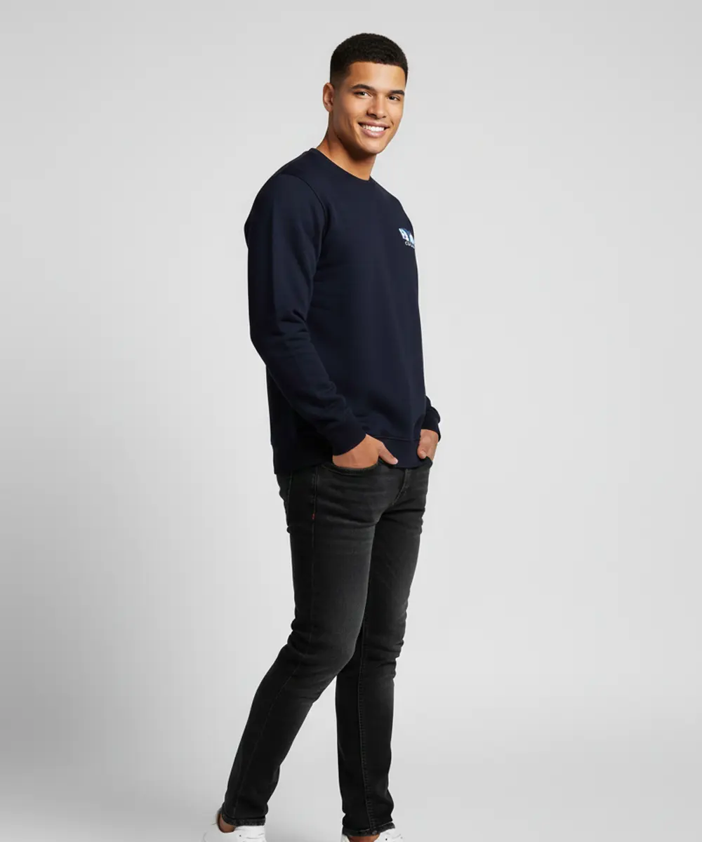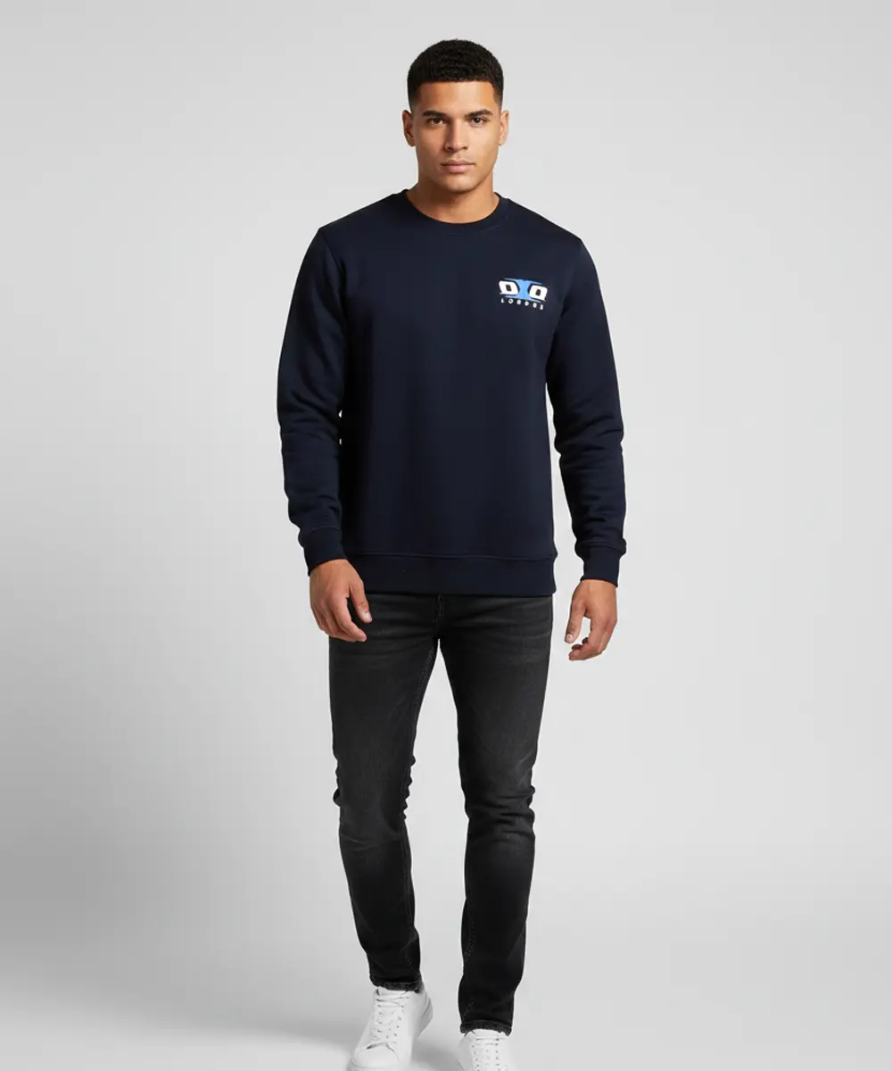 Men’s Premium Crew Neck Sweatshirt with Side Pockets |Denim Blue Printed Casual Wear