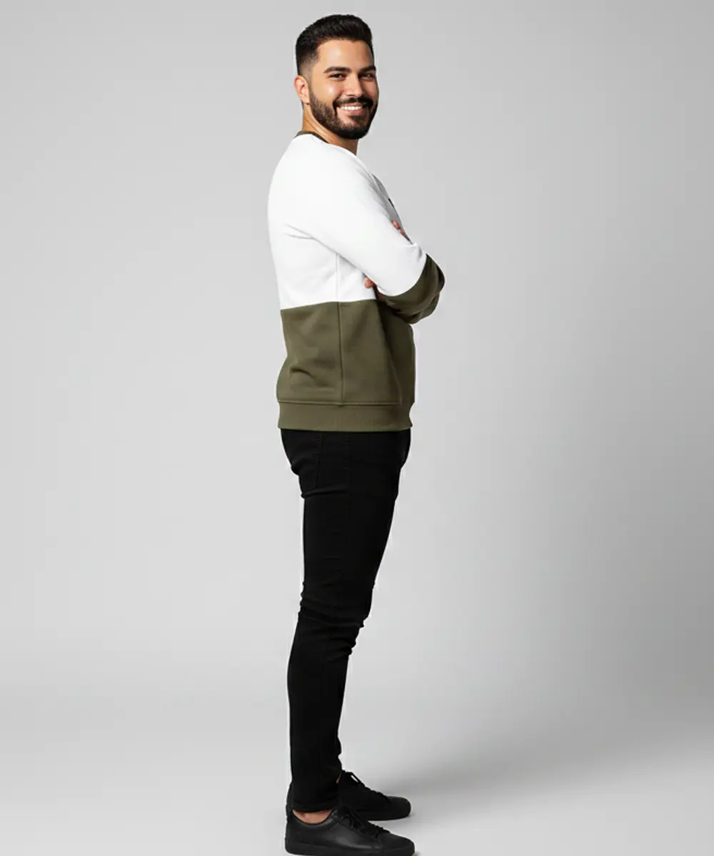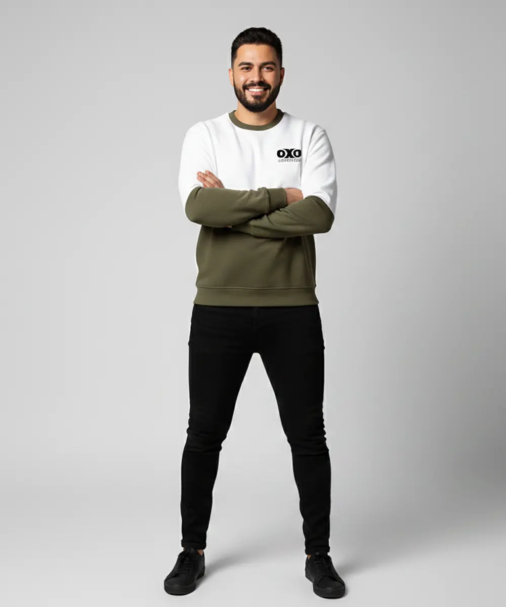 Multicolor Premium Crew Neck Sweatshirts Printed Olive & White Casual Wear