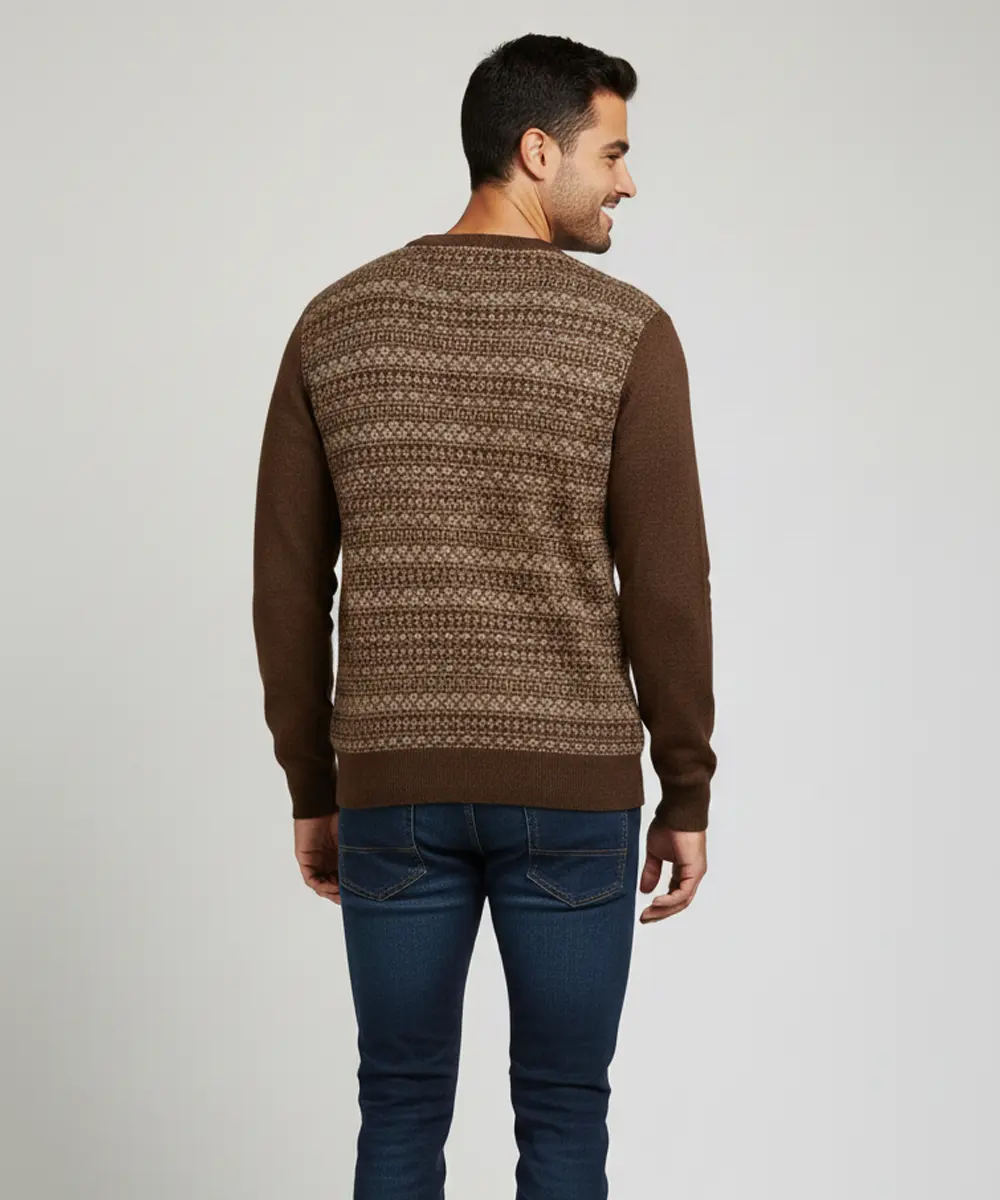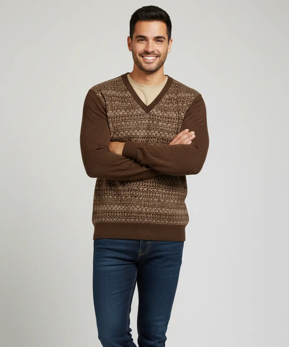 Be the first to review “Men’s Reversible Brown and Beige V-Neck Patterned Knit Sweater”