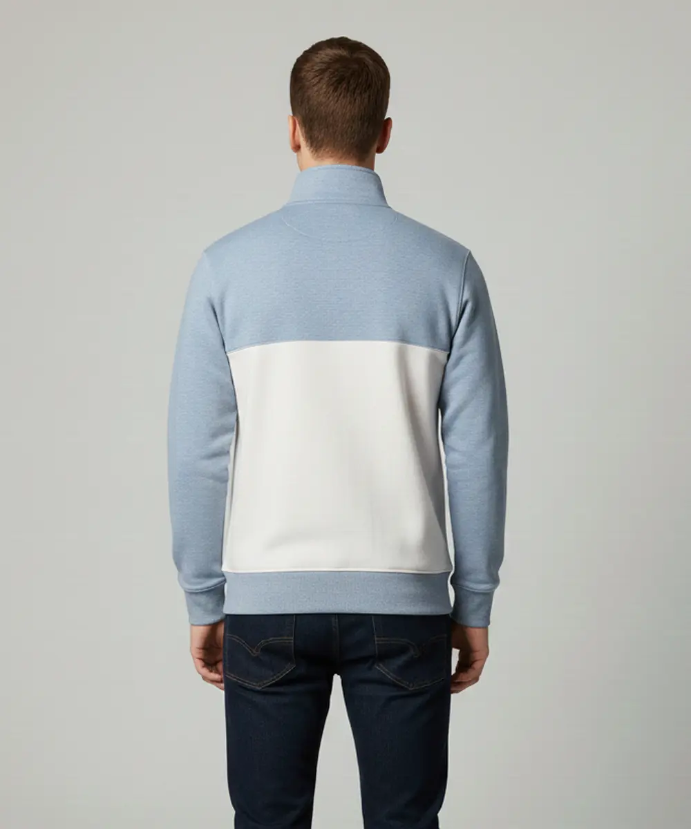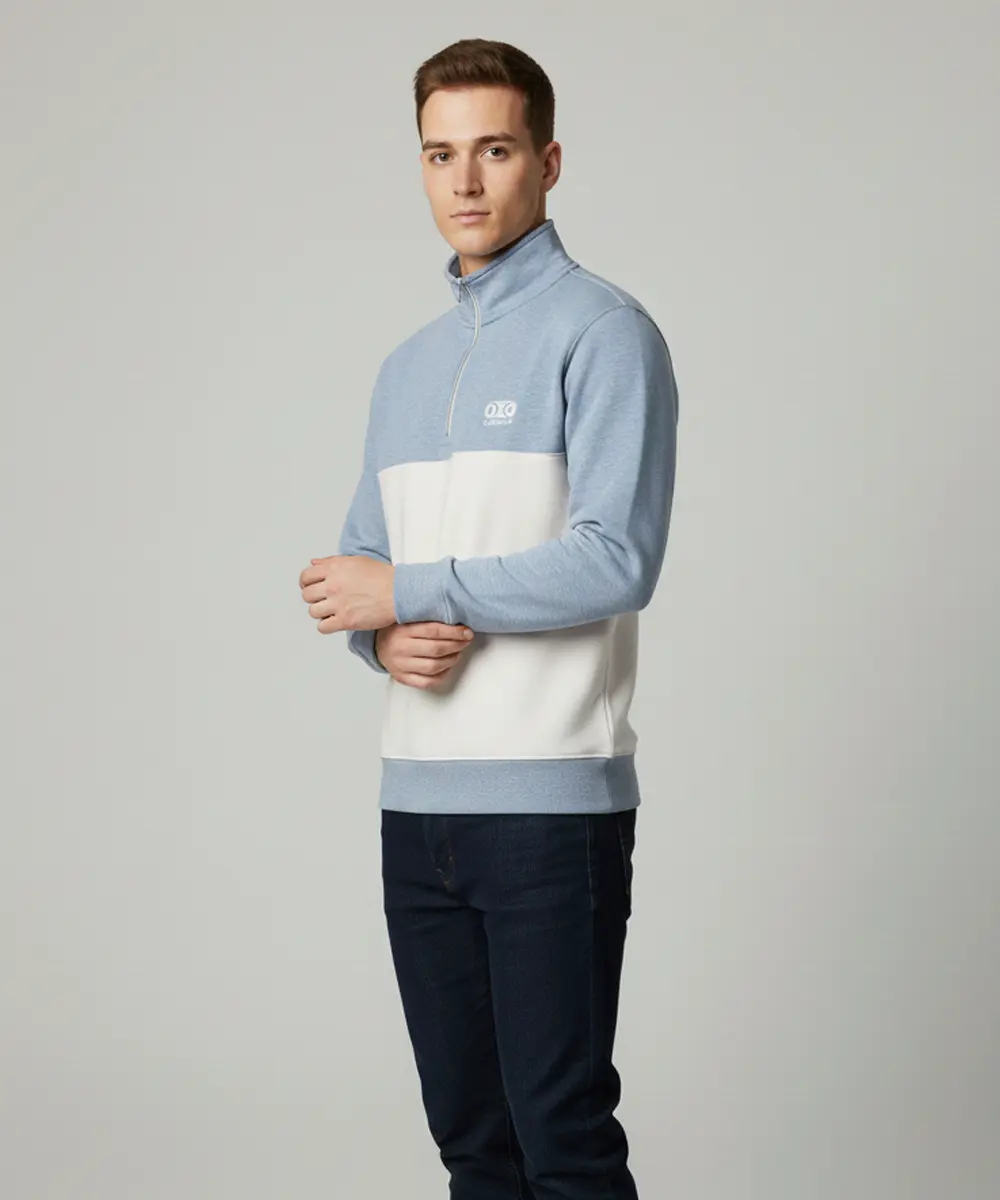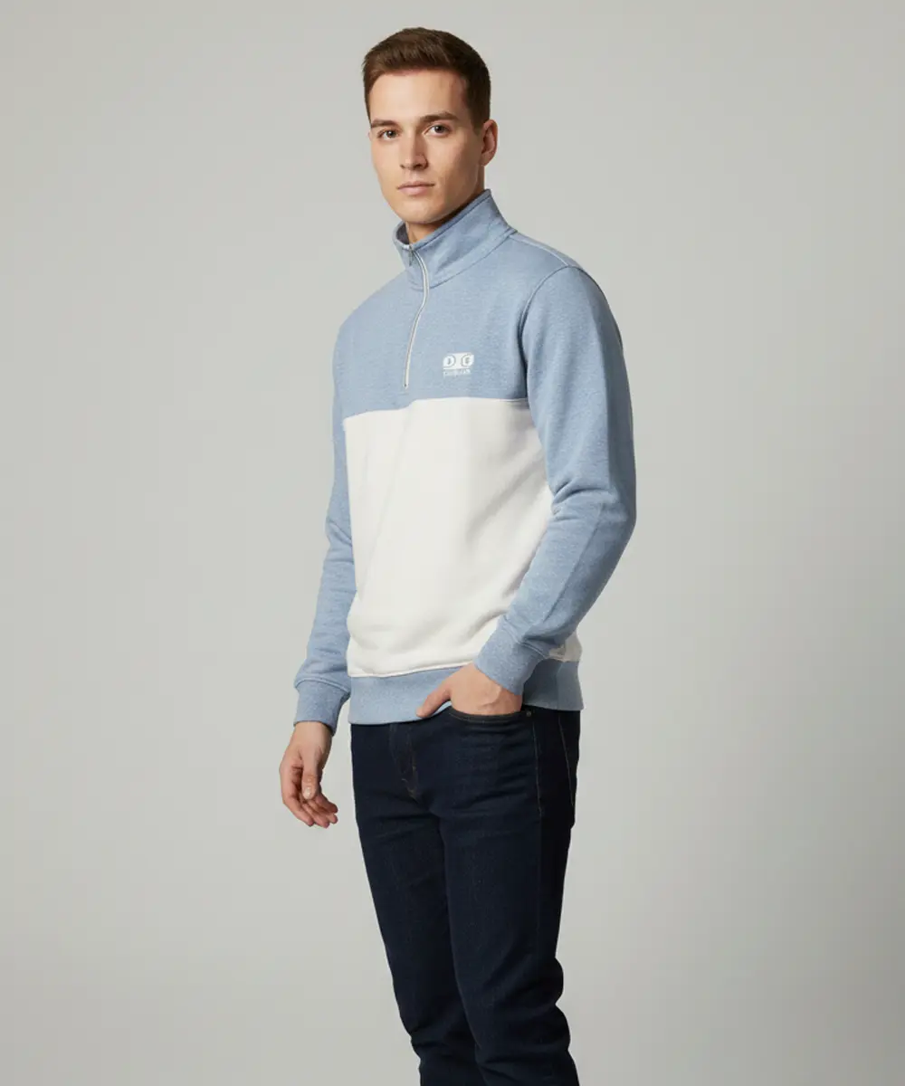 Multicolor Premium Half Zip Sweatshirt with Side Pockets | Regular Fit | Ice Blue and White Casual Wear