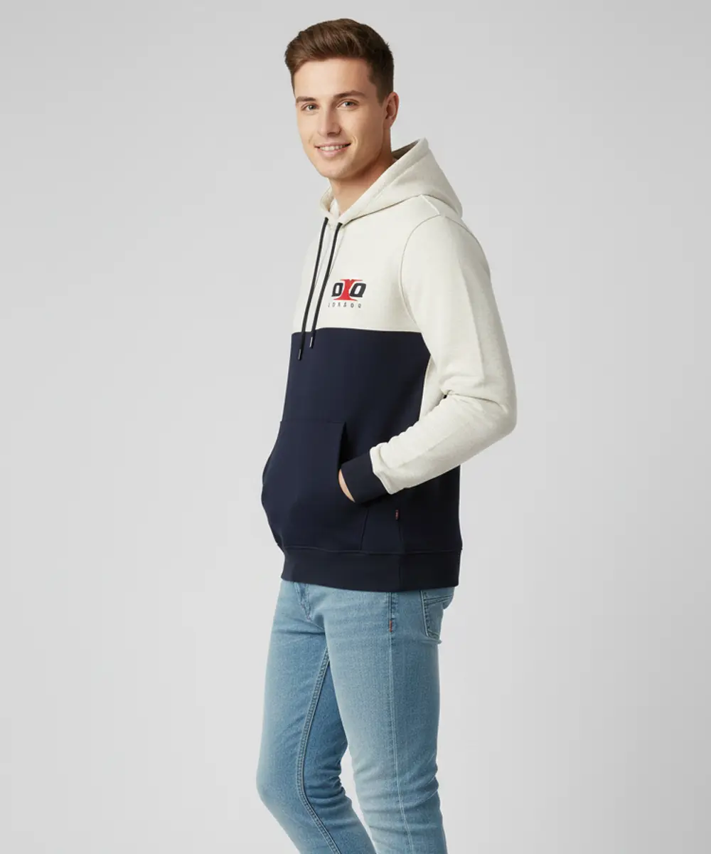 Multicolor Premium Hoodie Sweatshirt with Side Pockets | Regular Fit | Printed Black & Cream Casual Wear