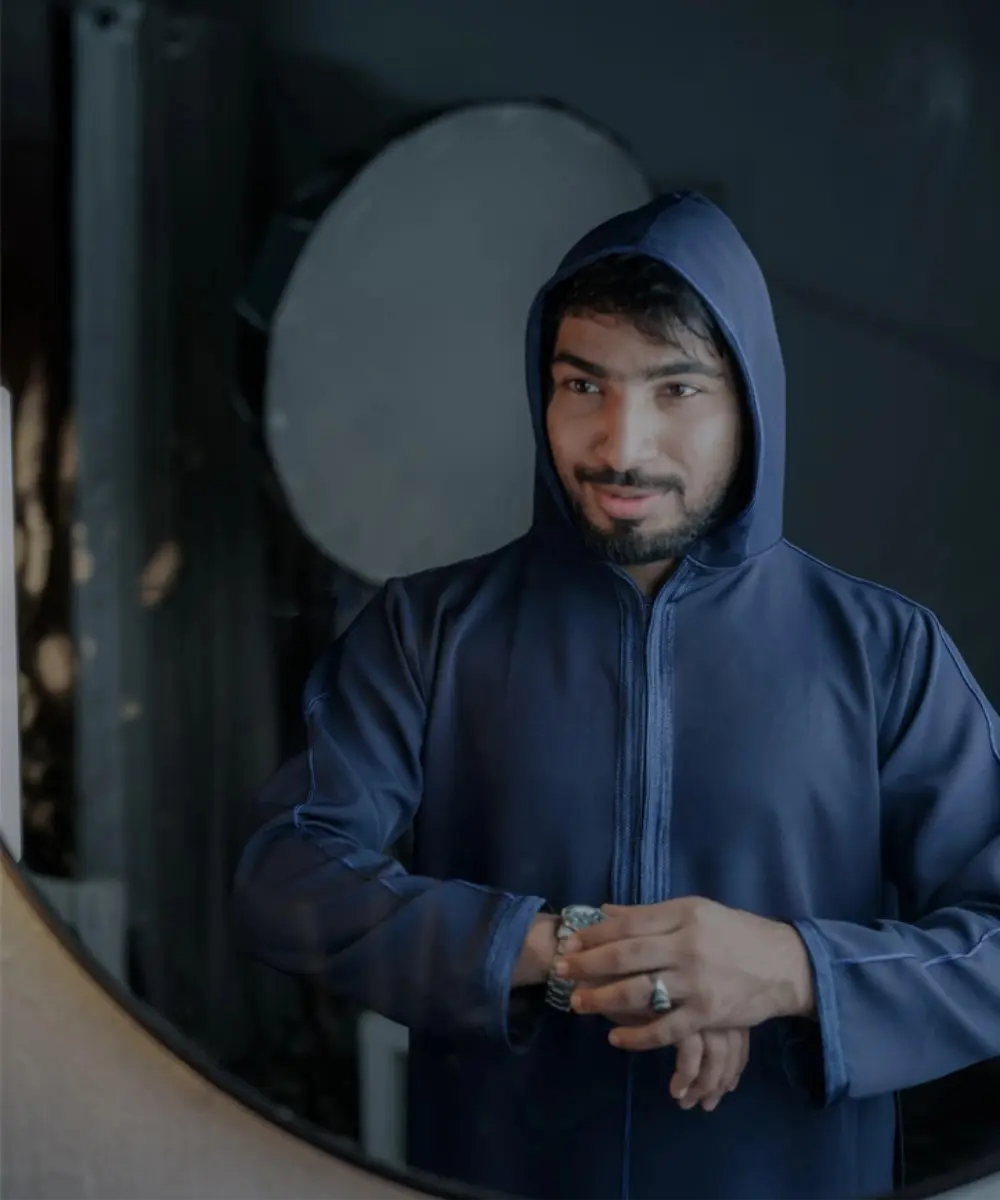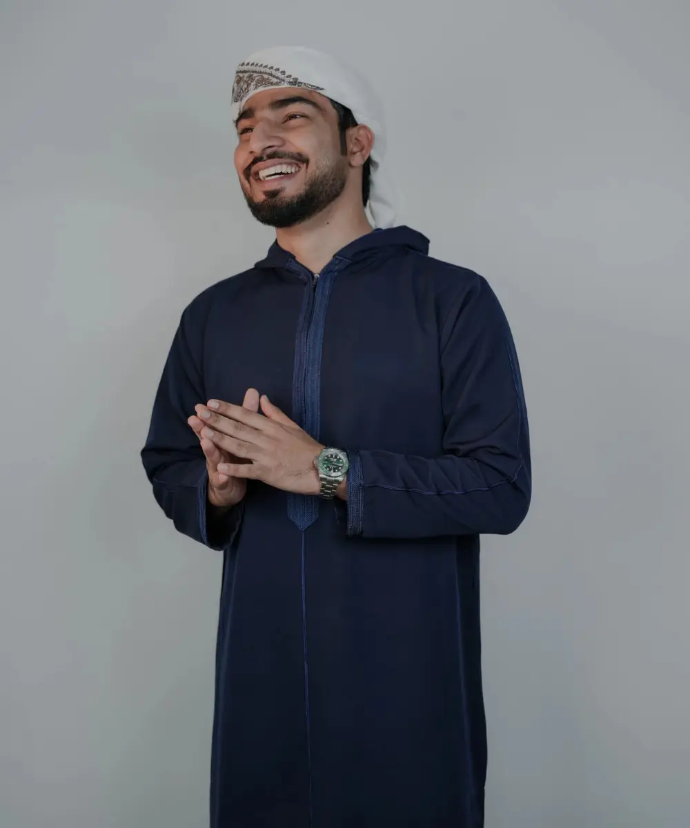 Premium Men’s Modern Thobe –NAVYBLUE | HOODIE
